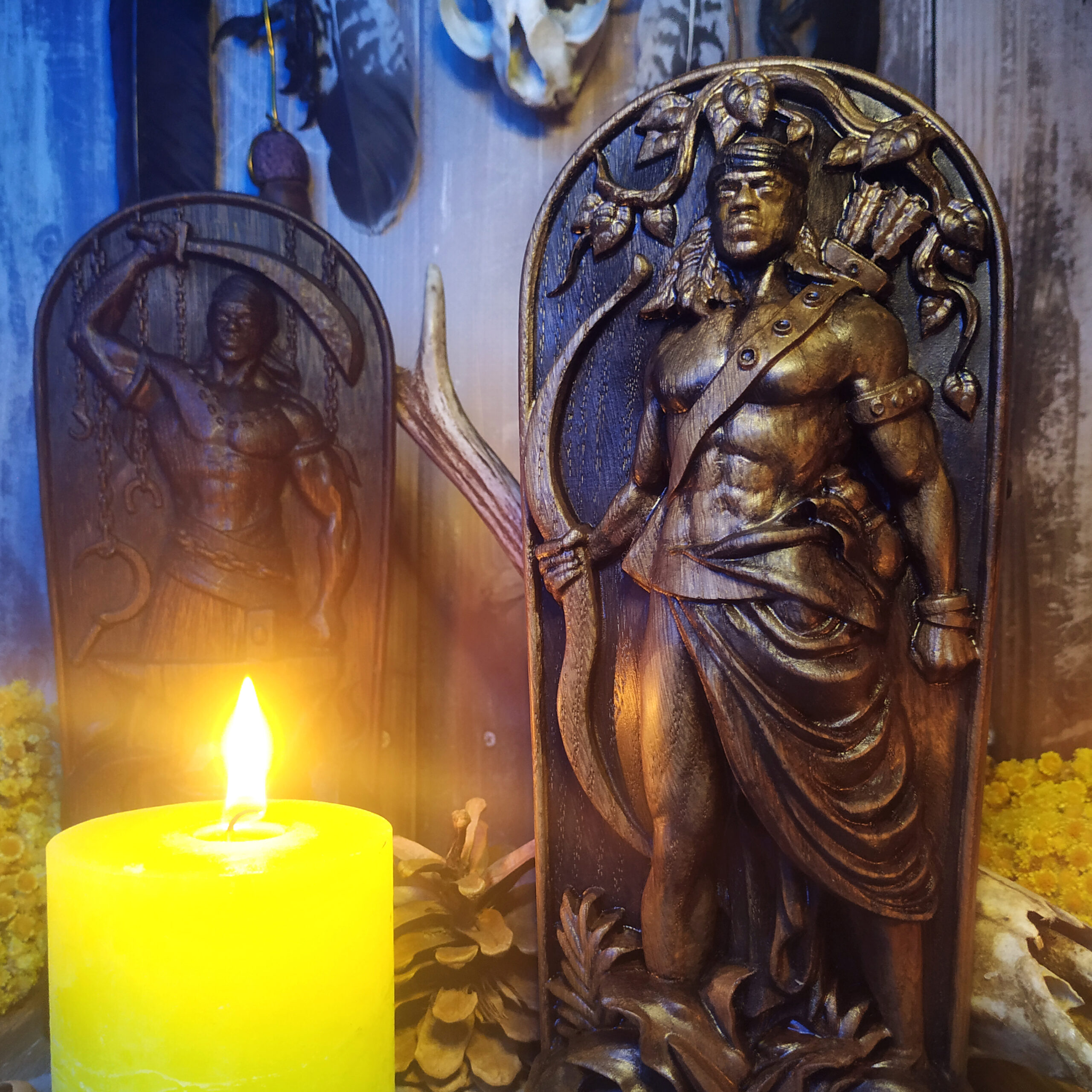 Ochosi one of the oldest orisha, hi is the spirit associated with the hunt, forests, animals, and wealth.