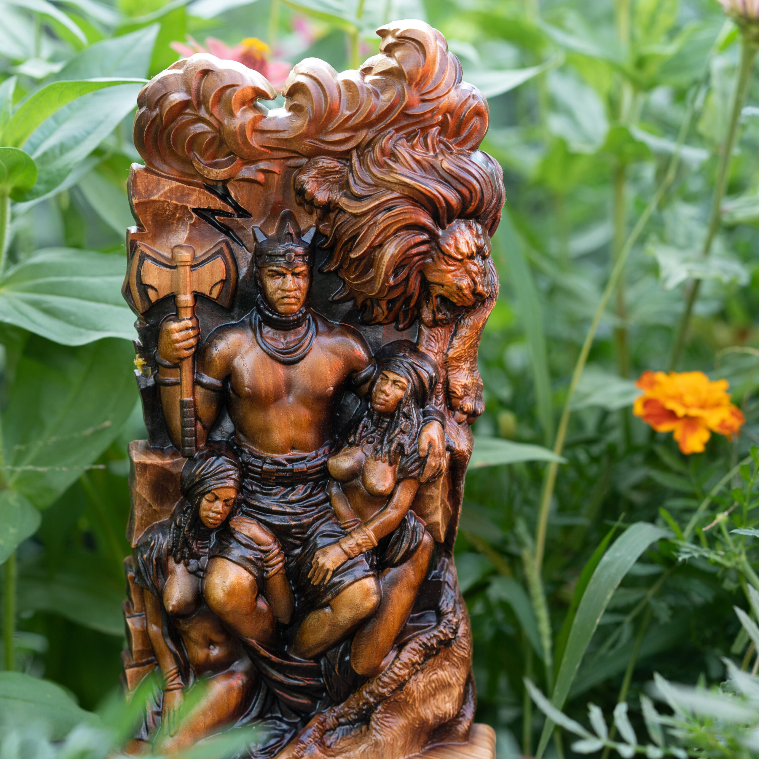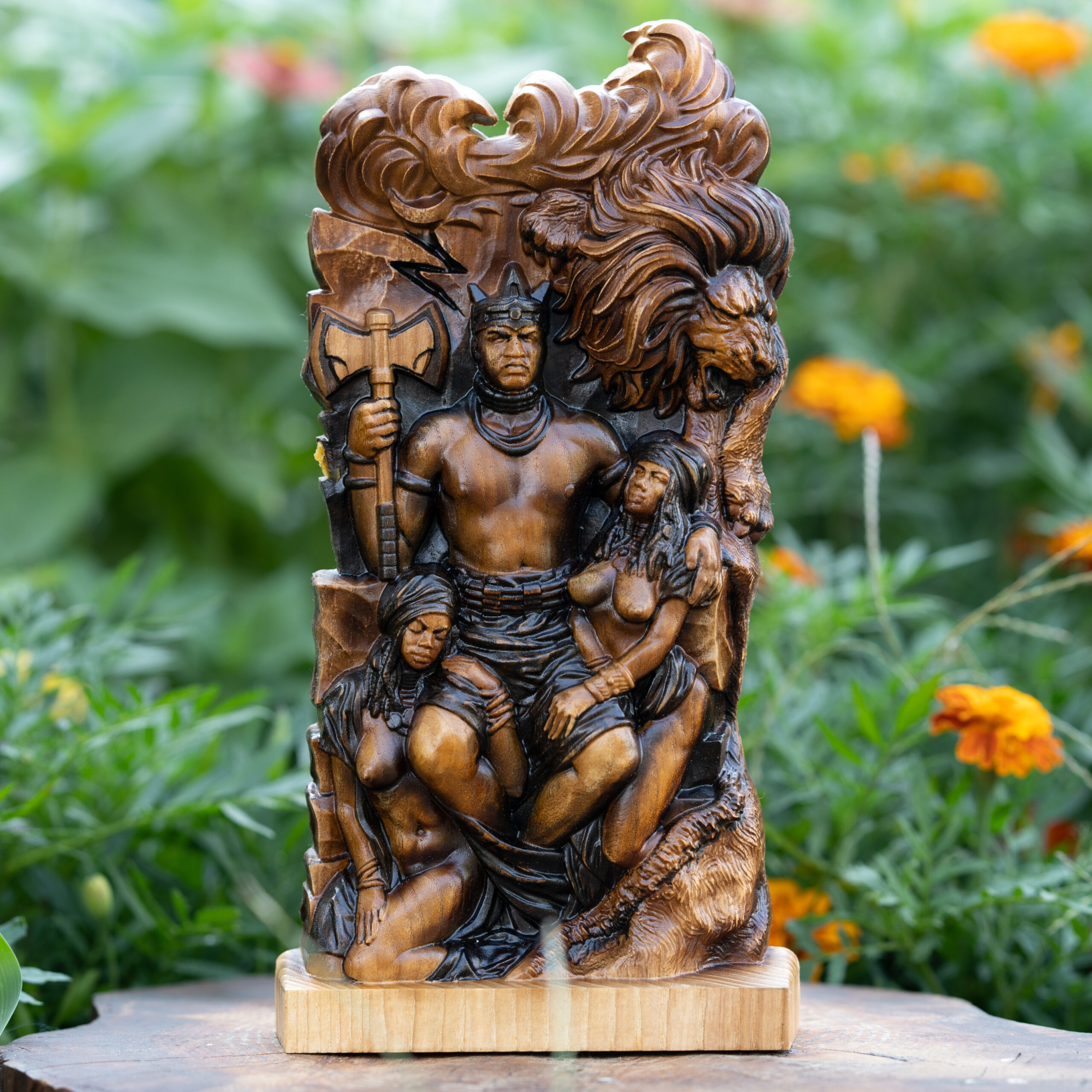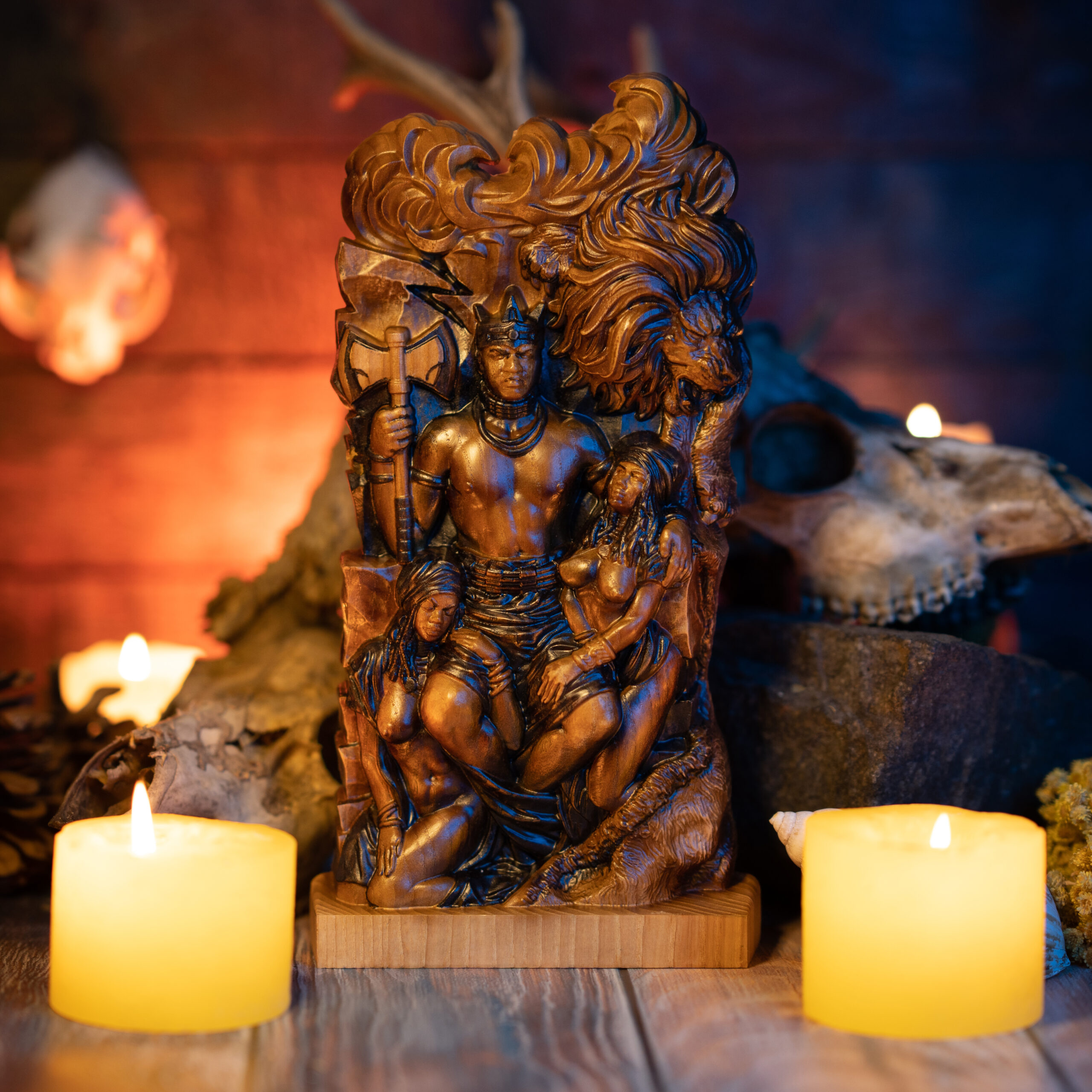 Honor the King in his full majesty. This commanding statue depicts Shango not merely as an Orisha, but as the divine incarnation of the royal ancestor and fourth king of Oyo.
